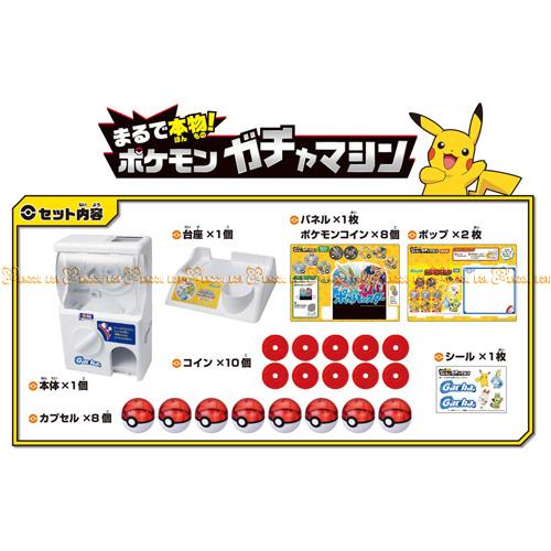 產品內容物:轉蛋機本體、轉蛋殼*8、轉蛋機錢幣*10、寶可夢硬幣*10